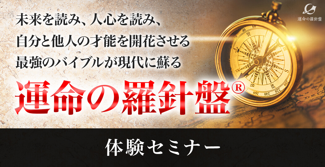 もしあなたがこの運命の羅針盤® を手にし、「未来を読む力」「人心を読む力」「人の才能を紐解く力」をマスターすることに少しでも関心がおありなら、これを本格的に学ぶことのできる講座の体験セミナーにご参加ください。