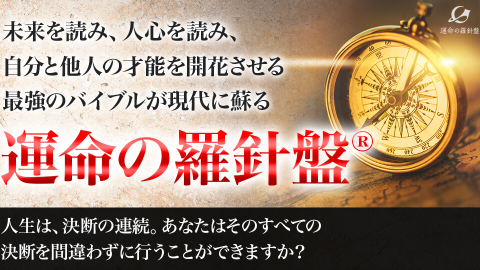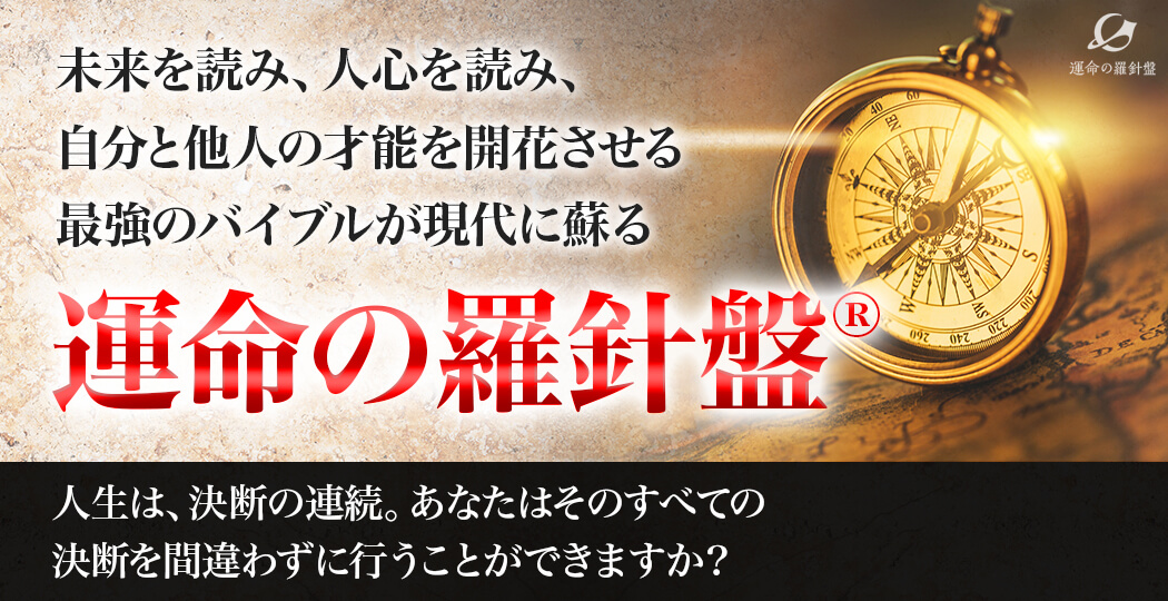 あなたがどんな立場の人であっても、運命の羅針盤が与えてくれる「未来を読む力」は、あなたの人生を飛躍させるために決して欠かせないものになるでしょう。