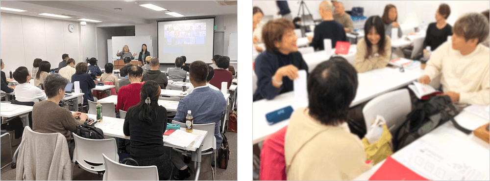 また、講義中には、「気づきのシェアタイム」がございます。気づきをシェアすることで学びが深まることはもちろんですが、共感と意気投合が生まれ自然とご縁が広がります。