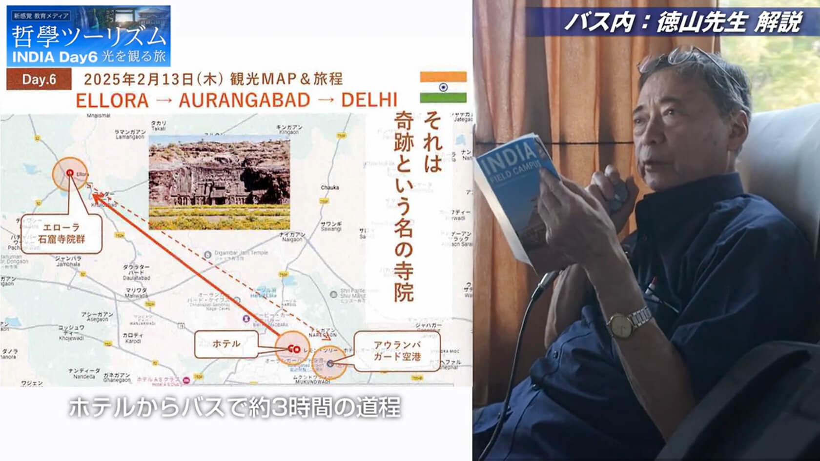 バス内徳山先生解説/ムンバイ市内/アジャンター石窟寺院群