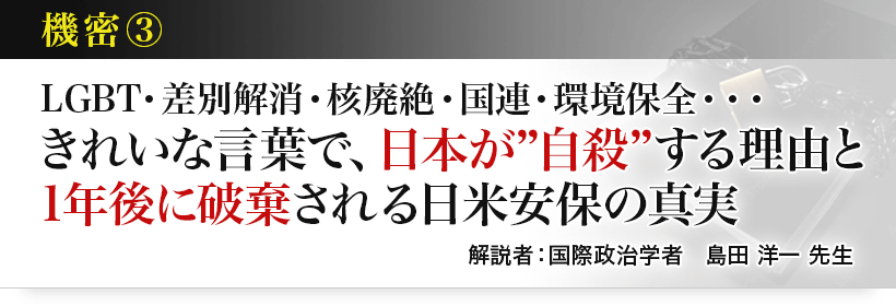 島田先生は「同盟」「差別解消」などの綺麗な言葉が、日本を滅ぼすと警告します。同盟国も一つ間違えば、敵国になるからです。